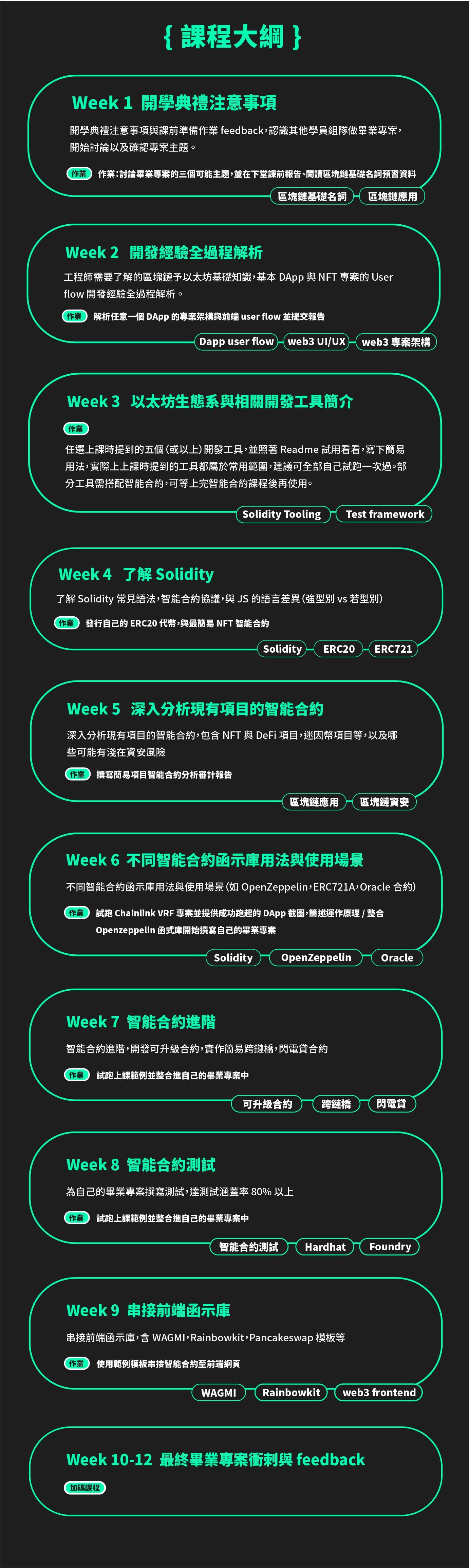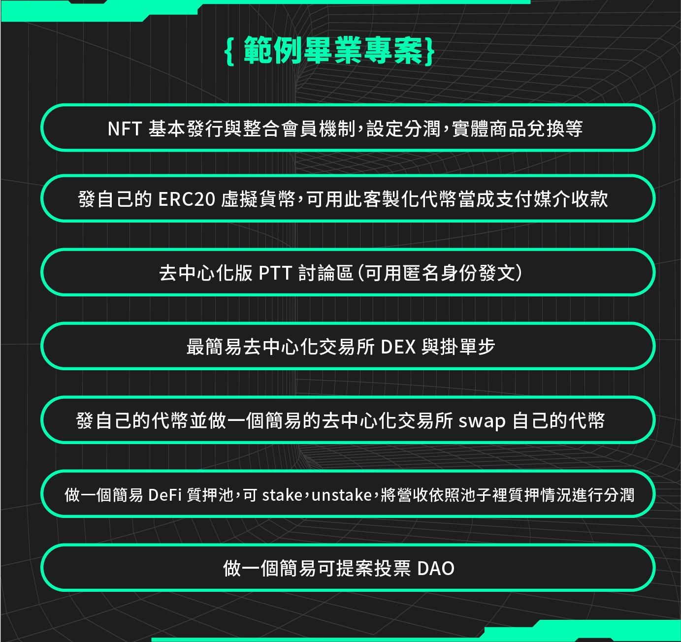 所有報名 區塊鏈工程師 Solidity 智能合約開發班 ,均能獲贈一堂線上預錄課程給 Solidity 語法基礎:零基礎學習以太坊開發 ,作為課前預習教材,完成報名後,就能立即開始學習並享受學院助教服務。(已購買課程之舊生將會有專屬超值優惠,請留意您的報名信箱)
