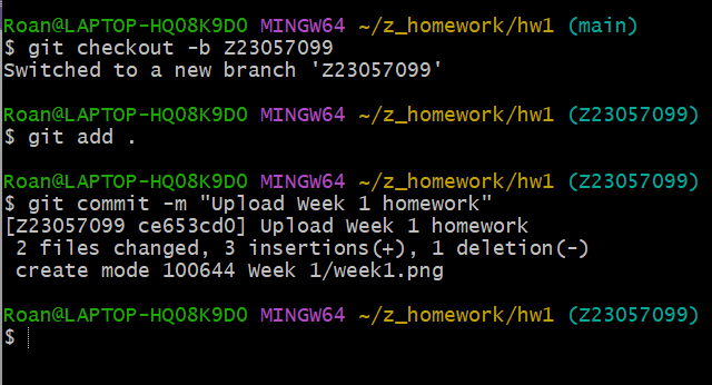 創造分支(在此以 Z23057099 為例)。但此僅為創造分支而已,要前往該分支,要再輸入指令: